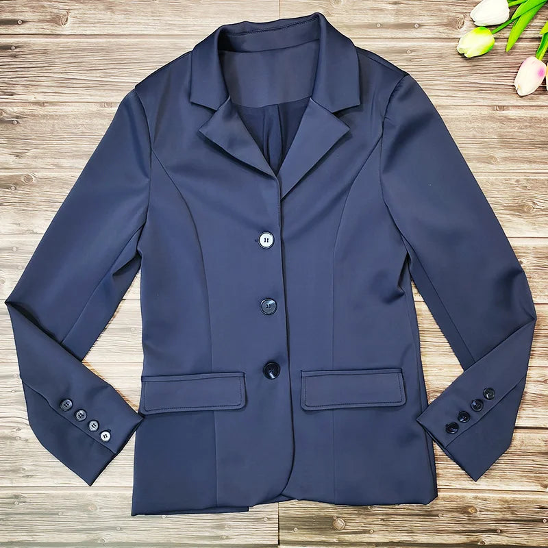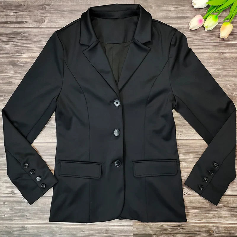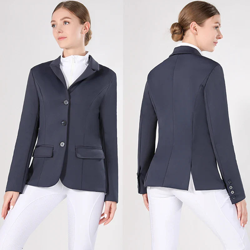 This jacket is ideal for riding shows, competitions, or practice sessions, combining functionality with professional style.